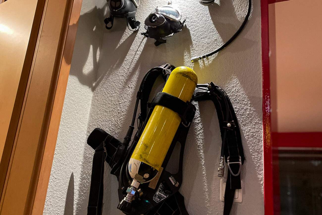 Neben der Unterrichtung bieten wir unseren Gästen einen Blick in unsere Umkleide und die Fahrzeughalle. Hier zeigt ein Mitglied unserer Wehr, wie man sich im Alarmfall umzieht und mit Atemschutz ausrüstet. Damit möchten wir Berührungsängste mit unseren Einsatzkräften nehmen und den Kindern zeigen, dass in der Uniform immer noch der gleiche Mensch steckt wie kurz zuvor in den Alltagsklamotten. Außerdem darf jeder einmal durch unsere Wärmebildkamera schauen und sich die Technik dahinter erklären lassen.