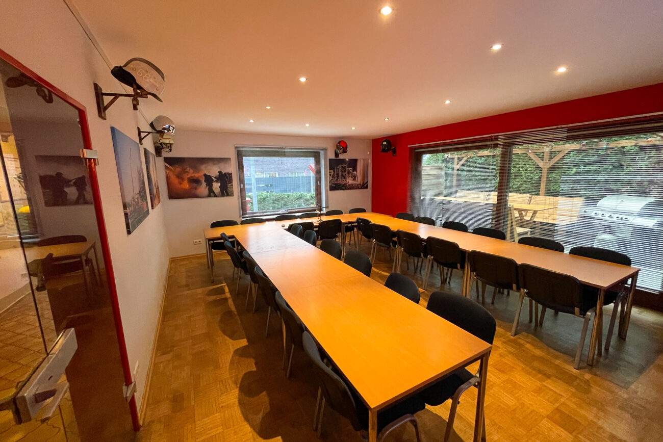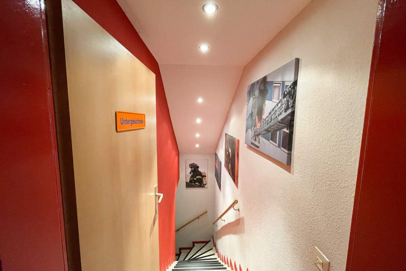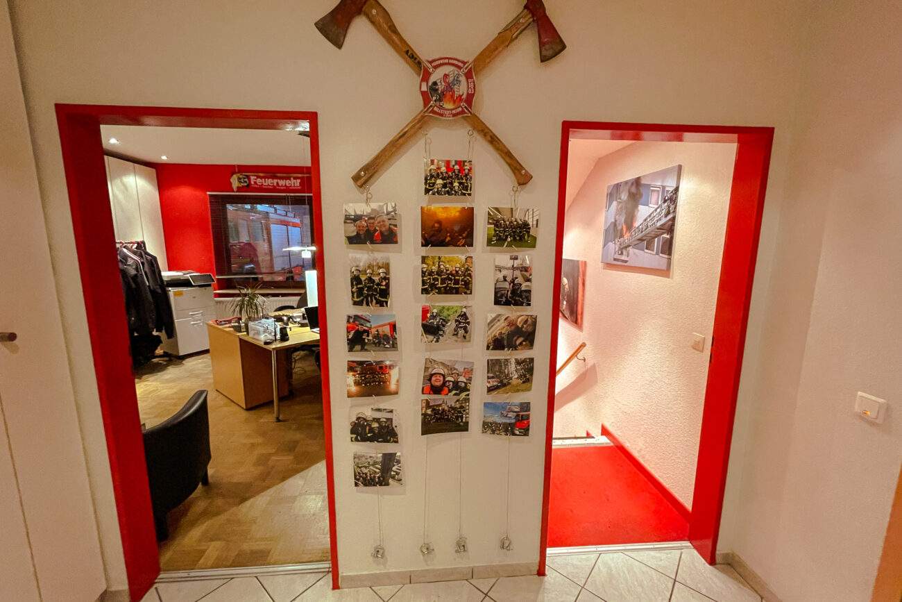 Für die Ausbildungsdienste verfügen wir über zwei Schulungsräume und eine Hoffläche die genügend Möglichkeiten für die Weiter- und Ausbildung z.B. auch als Stationsausbildung bieten. Ebenfalls verfügt die Jugendfeuerwehr über einen eigenen Ausbildungsraum, sowie einen eigenen Umkleideraum. Unsere Wehrführung verfügt über ein eigenes abschließbares Büro mit zusätzlichen Arbeitsplätzen. Für die Steigerung und Aufrechterhaltung der Fitness haben wir einen eigenen Kraftraum mit unterschiedlichsten Geräten ausgestattet, ob Rudern, Laufen, Boxen oder Kraft, hier kann man vieles trainieren. Für das soziale Miteinander haben wir im Aufenthaltsraum eine Sofaecke, in der man nach den Einsätzen das Geschehene miteinander besprechen und so auch gemeinsam aufarbeiten oder verarbeiten kann. In den Sommermonaten nutzen wir gerne hierfür auch unsere Terrasse und unseren kleinen Garten. Letzteres dient auch der Kameradschaftspflege und wird bei entsprechenden Temperaturen gerne zum Grillen genutzt. Ebenfalls zur Kameradschaftspflege haben wir uns einen kleinen Gesellschaftsraum in das Untergeschoß gebaut und einen Billardtisch bereitgestellt. Auch der Schulungsraum im Untergeschoß wird gerne mal umfunktioniert und als kleines Kino für stets einsatzbereite Kameradschaftsabende verwendet. Es ist absolut wichtig, dass sich die Kameraden, die so viel ehrenamtliche Zeit in die Sicherheit der Bürger investieren, hier gute Bedingungen für den Dienst, wie aber auch für die Kameradschaft, vorfinden – denn nur wer sich wohlfühlt, steht auch ständig zur Verfügung!