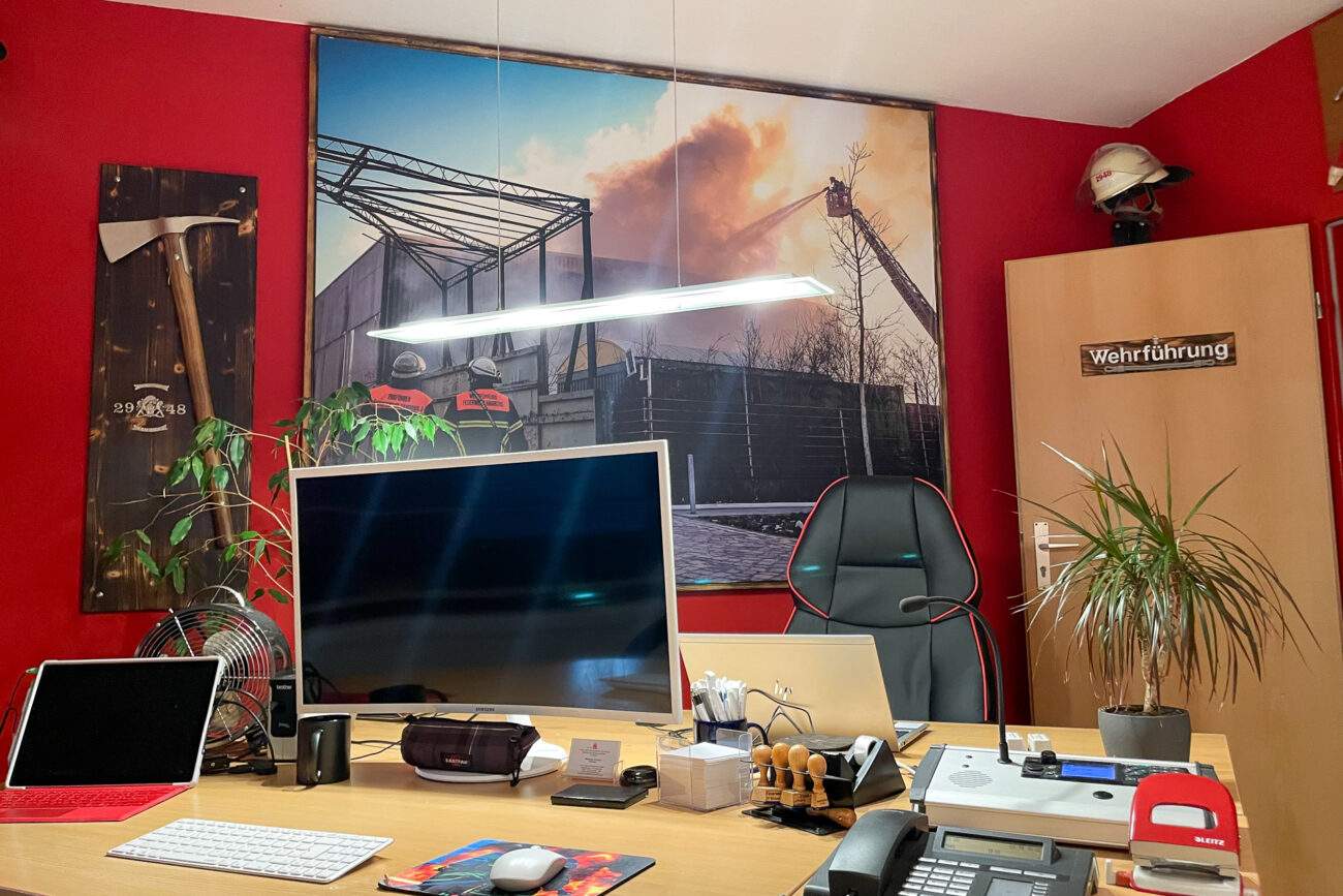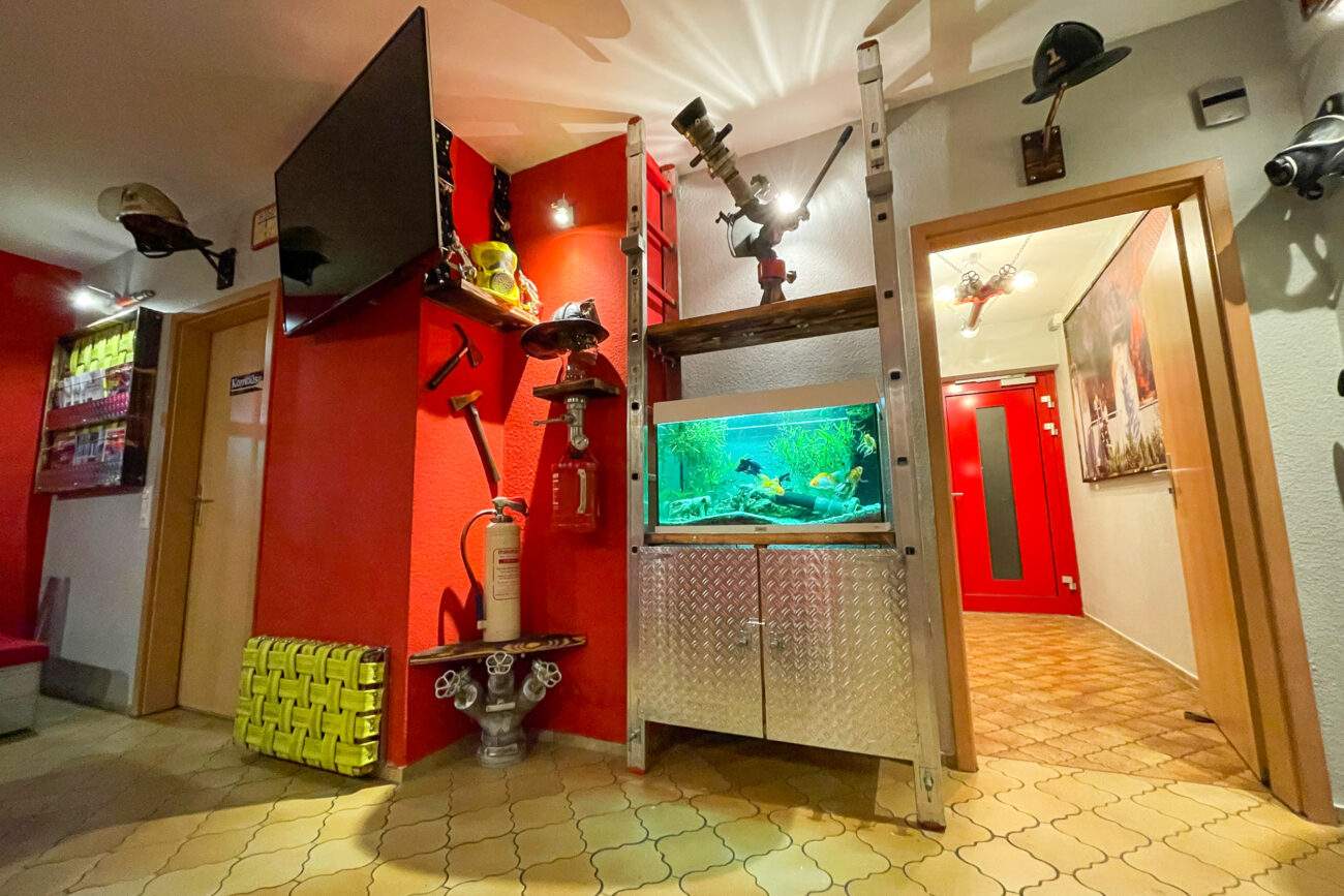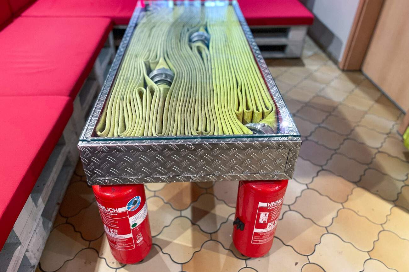 Für die Ausbildungsdienste verfügen wir über zwei Schulungsräume und eine Hoffläche die genügend Möglichkeiten für die Weiter- und Ausbildung z.B. auch als Stationsausbildung bieten. Ebenfalls verfügt die Jugendfeuerwehr über einen eigenen Ausbildungsraum, sowie einen eigenen Umkleideraum. Unsere Wehrführung verfügt über ein eigenes abschließbares Büro mit zusätzlichen Arbeitsplätzen. Für die Steigerung und Aufrechterhaltung der Fitness haben wir einen eigenen Kraftraum mit unterschiedlichsten Geräten ausgestattet, ob Rudern, Laufen, Boxen oder Kraft, hier kann man vieles trainieren. Für das soziale Miteinander haben wir im Aufenthaltsraum eine Sofaecke, in der man nach den Einsätzen das Geschehene miteinander besprechen und so auch gemeinsam aufarbeiten oder verarbeiten kann. In den Sommermonaten nutzen wir gerne hierfür auch unsere Terrasse und unseren kleinen Garten. Letzteres dient auch der Kameradschaftspflege und wird bei entsprechenden Temperaturen gerne zum Grillen genutzt. Ebenfalls zur Kameradschaftspflege haben wir uns einen kleinen Gesellschaftsraum in das Untergeschoß gebaut und einen Billardtisch bereitgestellt. Auch der Schulungsraum im Untergeschoß wird gerne mal umfunktioniert und als kleines Kino für stets einsatzbereite Kameradschaftsabende verwendet. Es ist absolut wichtig, dass sich die Kameraden, die so viel ehrenamtliche Zeit in die Sicherheit der Bürger investieren, hier gute Bedingungen für den Dienst, wie aber auch für die Kameradschaft, vorfinden – denn nur wer sich wohlfühlt, steht auch ständig zur Verfügung!