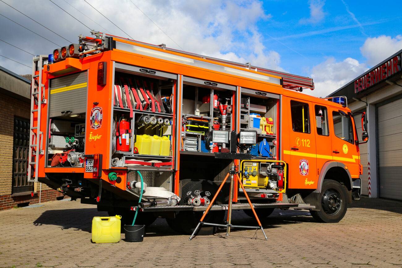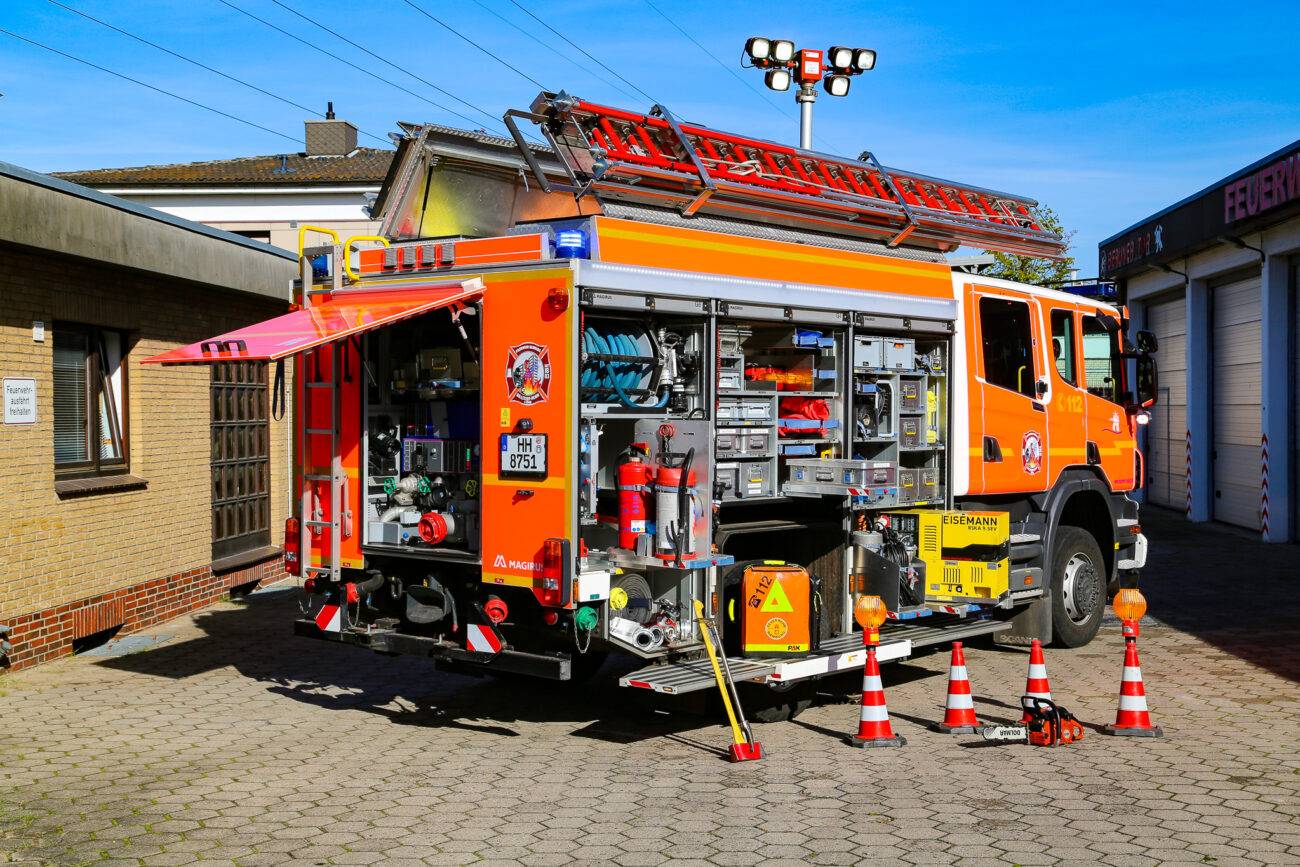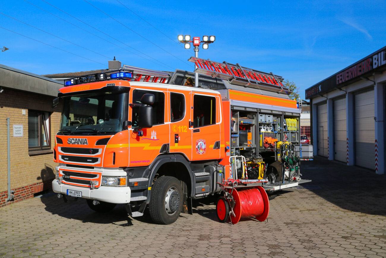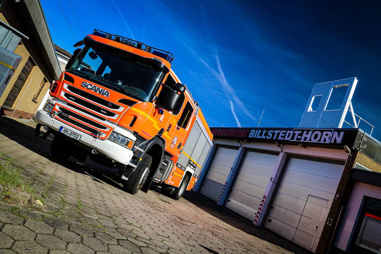 Unser „Erstangriffsfahrzeug“ ist ein HLF20 (Hilfeleistungslöschgruppenfahrzeug), welches von Magirus auf einem Scania-Fahrgestell aufgebaut wurde und uns seit 2016 unter dem Funkrufnamen „Florian Hamburg Billstedt-Horn 1“ für Einsätze zur Verfügung steht. Dieses „Schweizer Taschenmesser“ unter den Feuerwehrfahrzeugen ermöglicht es uns durch seine umfangreiche Beladung, quasi jede Einsatzlage zu bewältigen. Neben einer Besatzung von 9 Feuerwehrleuten bringt es 1.600 Liter Wasser, Schlauchmaterial, Strahlrohre, mehrere Leitern und insgesamt 4 Atemschutzgeräte zur Einsatzstelle. Es ist damit bestens für die Bekämpfung von Klein- oder Wohnungsbränden gerüstet. Zur Ausstattung gehören aber auch hydraulisches Rettungsgerät, ein Mehrzweckzug, E-Tauchpumpen und ein Wassersauger, womit wir z.B. Verkehrsunfälle mit eingeklemmten Personen, mittlere technische Hilfeleistungen oder unwetterbedingte Einsätze bewältigen können.