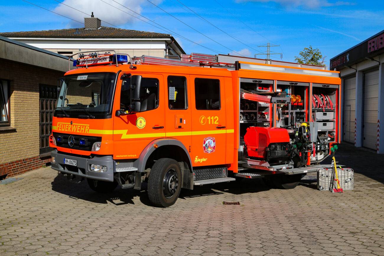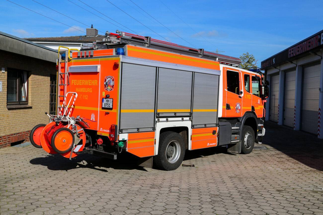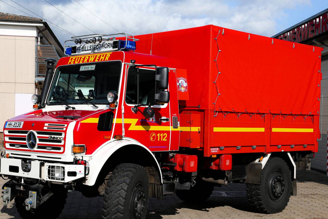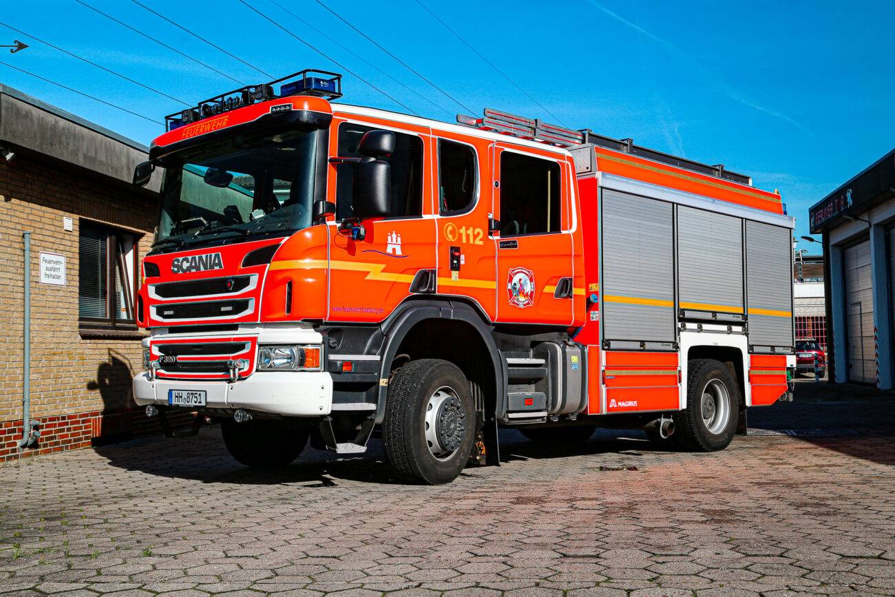 Unser „Erstangriffsfahrzeug“ ist ein HLF20 (Hilfeleistungslöschgruppenfahrzeug), welches von Magirus auf einem Scania-Fahrgestell aufgebaut wurde und uns seit 2016 unter dem Funkrufnamen „Florian Hamburg Billstedt-Horn 1“ für Einsätze zur Verfügung steht. Dieses „Schweizer Taschenmesser“ unter den Feuerwehrfahrzeugen ermöglicht es uns durch seine umfangreiche Beladung, quasi jede Einsatzlage zu bewältigen. Neben einer Besatzung von 9 Feuerwehrleuten bringt es 1.600 Liter Wasser, Schlauchmaterial, Strahlrohre, mehrere Leitern und insgesamt 4 Atemschutzgeräte zur Einsatzstelle. Es ist damit bestens für die Bekämpfung von Klein- oder Wohnungsbränden gerüstet. Zur Ausstattung gehören aber auch hydraulisches Rettungsgerät, ein Mehrzweckzug, E-Tauchpumpen und ein Wassersauger, womit wir z.B. Verkehrsunfälle mit eingeklemmten Personen, mittlere technische Hilfeleistungen oder unwetterbedingte Einsätze bewältigen können.