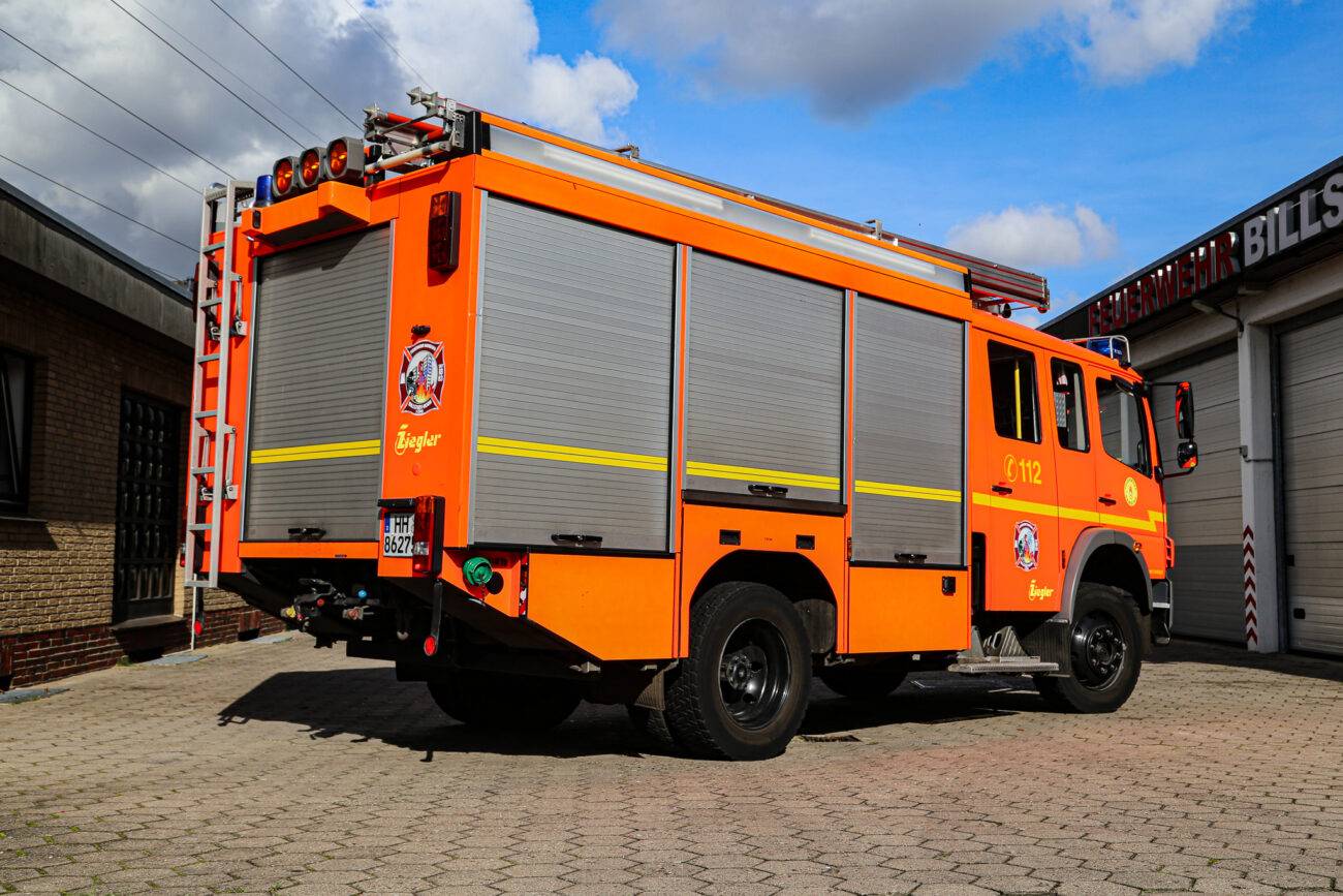 Als zweites Fahrzeug steht uns ein LF16 KatS (Löschgruppenfahrzeug) zur Verfügung. Es ist eines von 52 baugleichen Fahrzeugen, die seit 2005 an die Feuerwehr Hamburg übergeben wurde. Von der Firma Ziegler auf einem Mercedes Atego-Fahrgestell aufgebaut, leistet es uns unter dem Funkrufnamen „Florian Hamburg Billstedt-Horn 2“ seitdem treue Dienste. Ein Löschgruppenfahrzeug ist vorwiegend auf Brandbekämpfung spezialisiert und führt dafür umfangreiche Ausstattung mit sich. Neben umfangreichen Schlauchmaterial, Strahlrohren und 1.600 Liter Wasser, befindet sich im Fahrzeug zusätzlich zur festeingebauten Fahrzeugpumpe auch eine Tragkraftspritze, mit der eine Wasserförderung beispielsweise auch aus schwer zugänglichen Gewässern möglich ist. Auch wenn der Schwerpunkt der Beladung eindeutig auf Brandbekämpfung liegt, findet sich auch Ausstattung für die einfache technische Hilfeleistung. Motorkettensägen, ein Elektro-Trennschleifer und E-Tauchpumpen ermöglichen so auch Einsätze in Folge von Unwettern. Besonders an einem KatS, also einem Katastrophenschutzfahrzeug, ist, dass es auch überregional zu Großschadensereignissen ausrücken kann. So war unser LF16KatS beispielsweise im Rahmen eines großen Hilfeleistungskontingents der Feuerwehr Hamburg 2013 beim Elbehochwasser in Dresden im Einsatz.